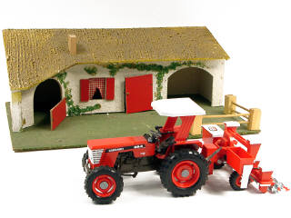 DIVERS CARRARO 88.4 Tracteur agricole avec remorque d'épandage rouge & blanc