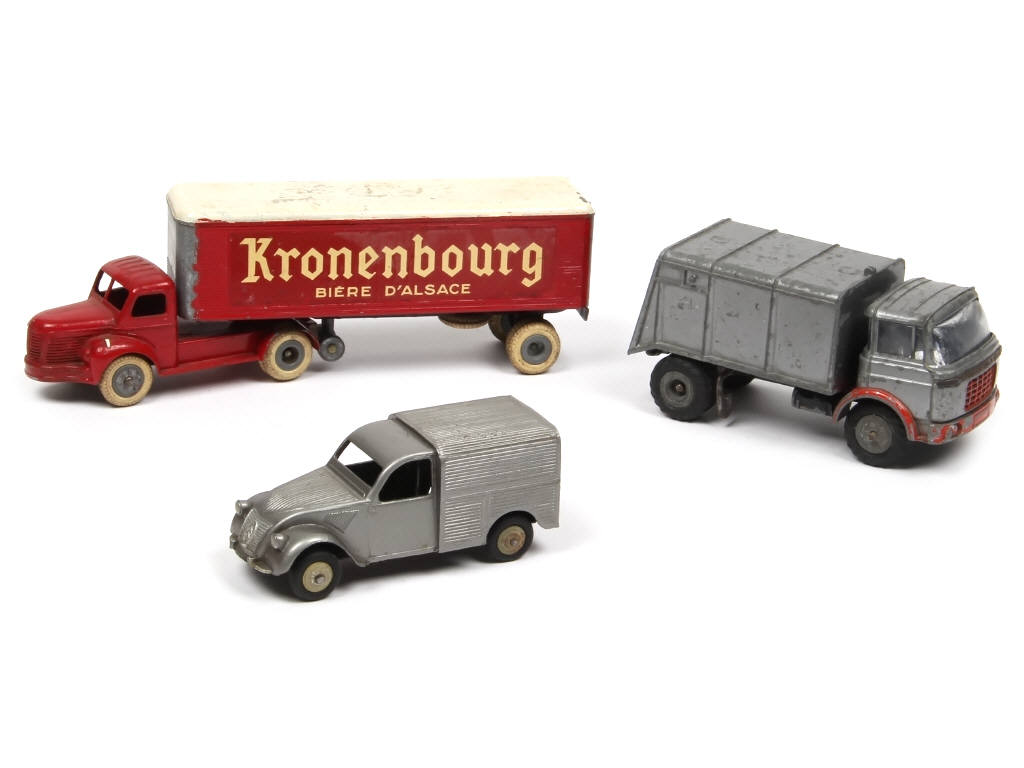 comprend notamment : CITROEN 2CV fourgonnette (première version avec marquage creux petites lettres - petits détails ajoutés) - avec petits manques & parties cassées - pneus plus ou moins séchés & quelques traces d'oxydation