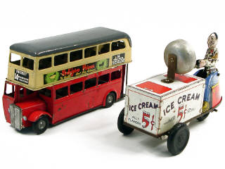 longueur 18,5 cm - moteur à friction (fonctionne) - avec les publicités 'PENGUIN' & 'PEDIGREE PRAMS'