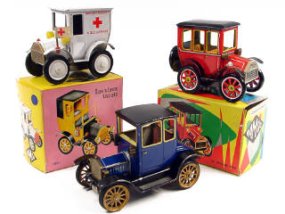 longueur 16,5 cm - moteur à clef dont le mouvement imite le tremblement des tacots (à revoir) - direction par le volant (manquant)