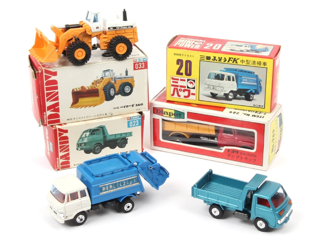 on y retrouve les marques : SHINSEI, TOMICA DANDY & YONEZAWA TOY DIAPET