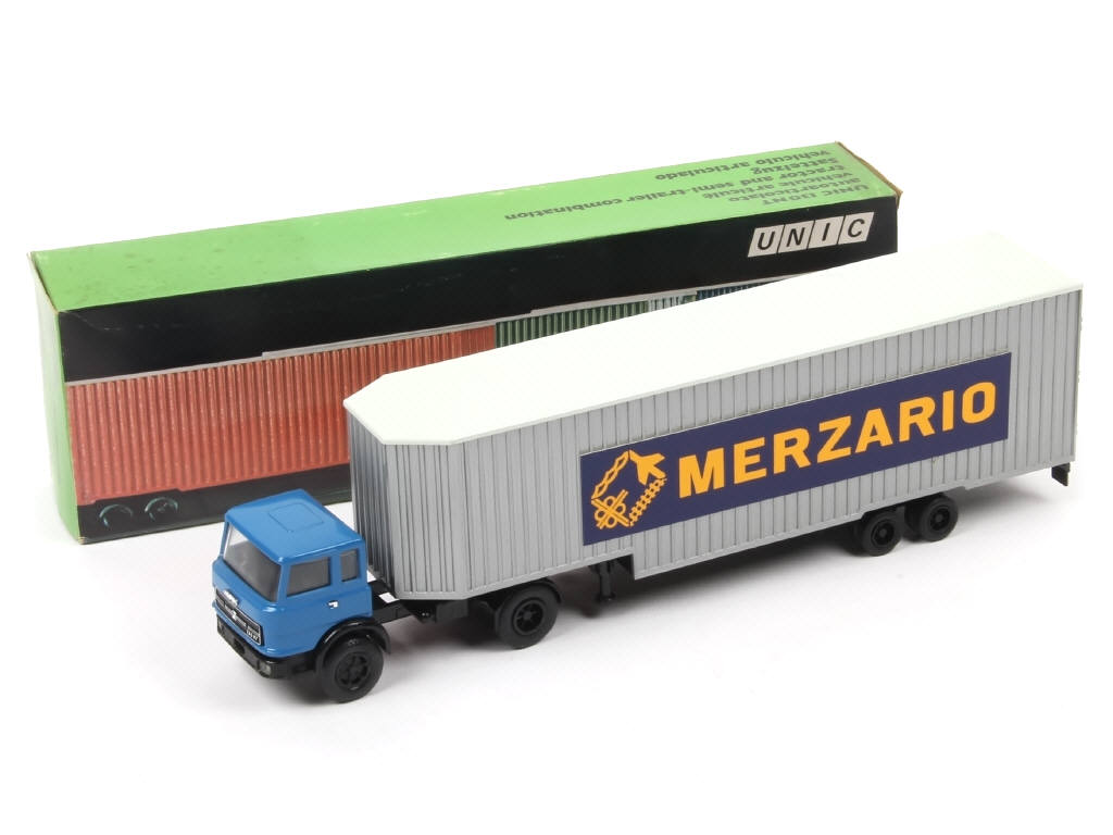 OLD CARS (ITALIE) FIAT 130 NT Semi-remorque fourgon 'MERZARIO' gris métal & bleu
