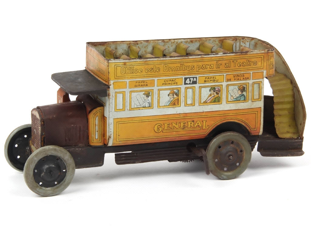 PAYA (ESPAGNE) Autobus à impérial en tôle lithographiée 'GENERAL' brique, noir & jaune