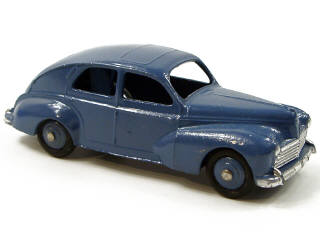 DINKY TOYS (FRANCE) 24R PEUGEOT 203 Petite lunette arrière (version avec intérieur de toit quadrillé & ailes lisses) bleu pétrole, jantes identiques