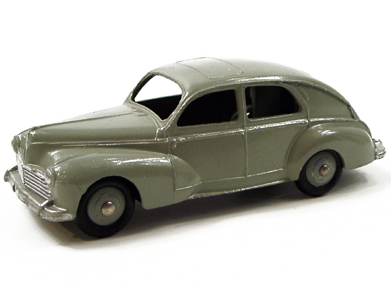 DINKY TOYS (FRANCE) 24R PEUGEOT 203 Petite lunette arrière (version avec intérieur de toit lisse & feu de stop) gris moyen, jantes identiques