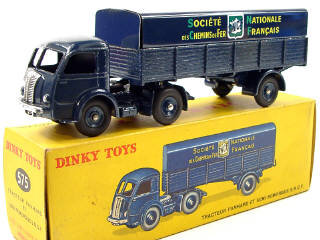 DINKY TOYS (FRANCE) 575 PANHARD Semi-remorque 'S.N.C.F' (version avec jantes concaves) bleu foncé (fond de l'écusson quadrillé)