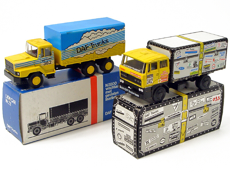 LION-CAR (PAYS-BAS) 58 DAF 3300 Fourgon 'PARIS DAKAR' jaune & gris