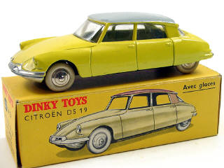 DINKY TOYS (FRANCE) 24CP CITROËN DS 19 (version avec vitres & jantes convexes) jaune citron, toit gris clair