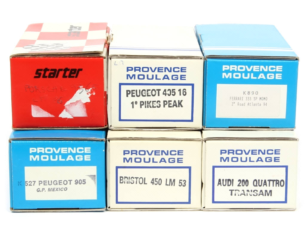 kits à monter - semble complet - on y retrouve notamment les marques : PROVENCE MOULAGE & MINI RACING - quelques boites non conformes (dont certaines avec petits manques de papier)