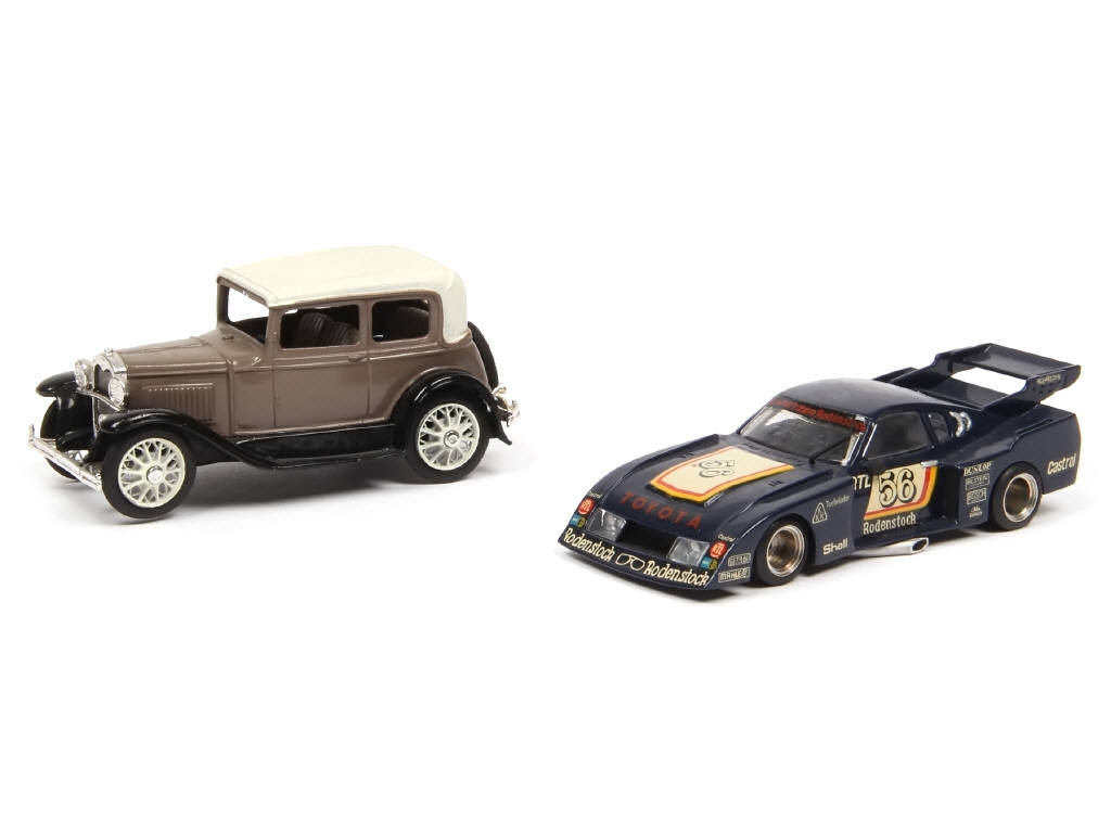 comprend : FORD MODEL A VICTORIA (made in CANADA - une extrémité de pare-chocs légèrement déformé) & TOYOTA rallye - on y retrouve les marques : BROOKLIN & MINICHAMPS (moulage WESTERN MODELS)