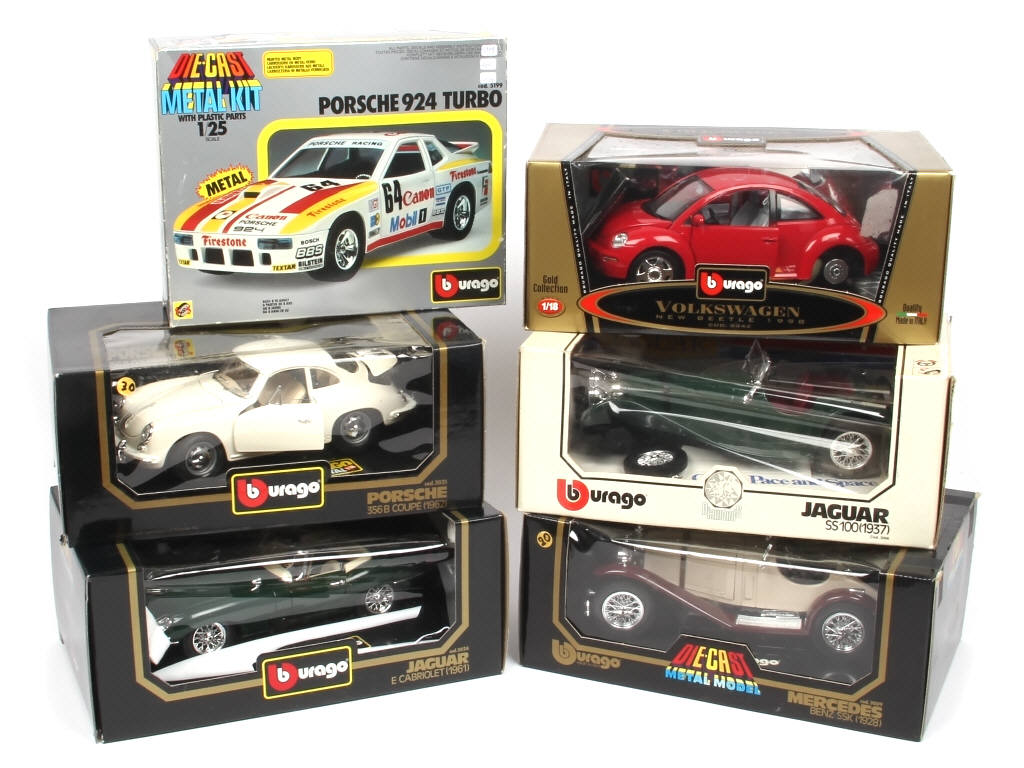 échelle 1/18ème - comprend notamment les modèles : JAGUAR, MERCEDES & VOLKSWAGEN - 3 modèles PORSCHE (échelle 1/24ème) regroupés dans un coffret (avec notices) - quelques petits éléments cassés sur certains modèles