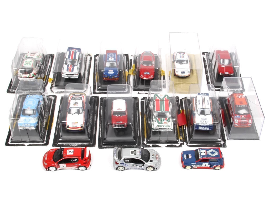modèles principalement vendus en kiosque - comprend notamment les modèles : LANCIA, PORSCHE, MINI COOPER & FORD - 3 modèles sans boite (état 'A') - possibilité de quelques petits manques, parties cassées & à recoller - quelques boites en états 'c'