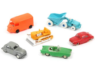 échelle différentes - miniatures reproduisant notamment les modèles : CITROËN, SIMCA & RENAULT - barbotins de chenilles & jantes du dumper plus ou moins fondus - quelques petits manques & parties cassées