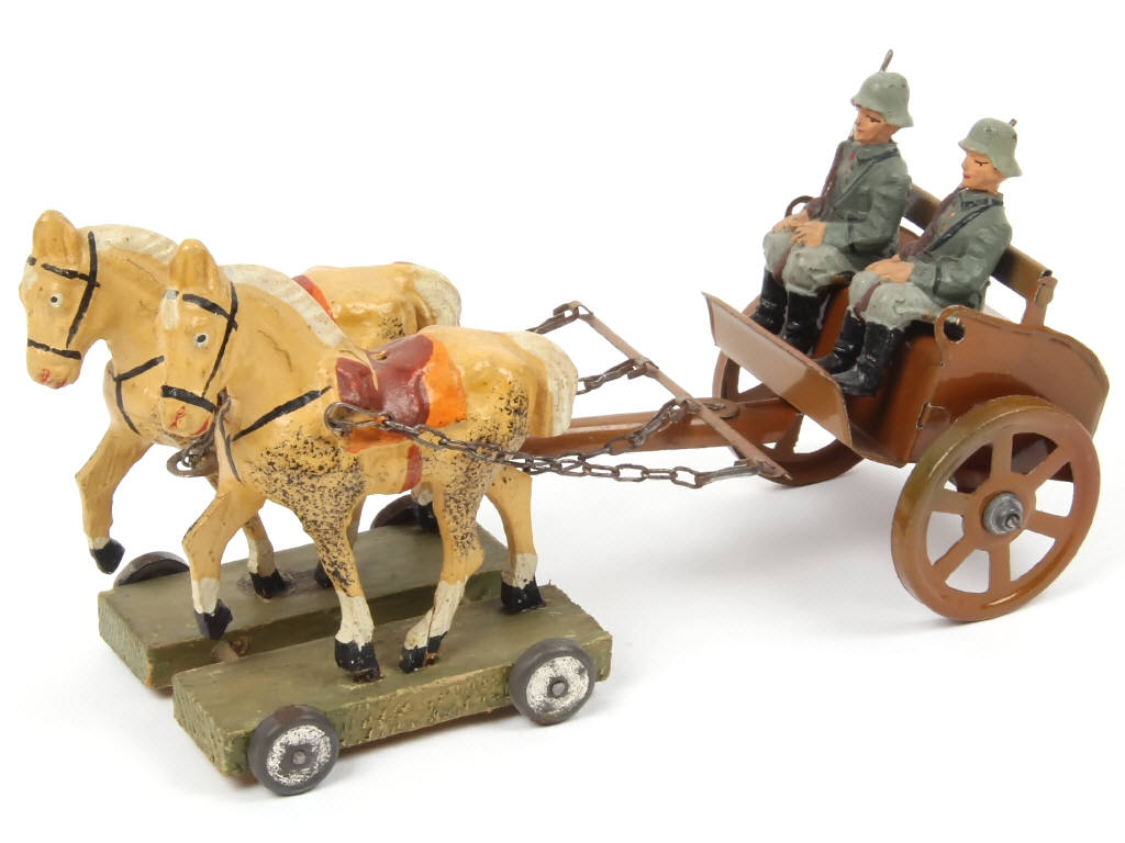 longueur : 16 cm - avec 2 chevaux (non conformes) & 2 soldats allemands (quelques petites craquelures & légères retouches)