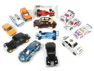 différentes échelles de 1/24e à 1/17e - on y retrouve notamment les marques : MIRA, POLISTIL, BBURAGO, CHAMPION & SOLIDO - comprend notamment les modèles : TALBOT, FORD, LANCIA, RENAULT, CITROËN, MATRA & FERRARI - possibilité de manques & parties cassées