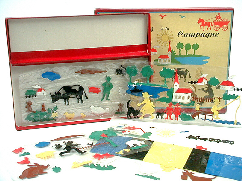 contient des silhouettes diverses permettant de réaliser un panorama - sous sachet plastique jamais déballé - provient d'un fond de magasin - contains various cut-out silhouettes allowing you to make a panoramic scene - still in original bag, never unwrapped - original shop stock