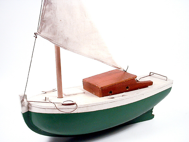 DIVERS (FRANCE) Chalutier à voile en bois peint vert, blanc & bois