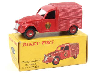 DINKY TOYS (FRANCE) 25D CITROËN 2CV Fourgonnette de pompiers rouge, jantes convexes rouges
