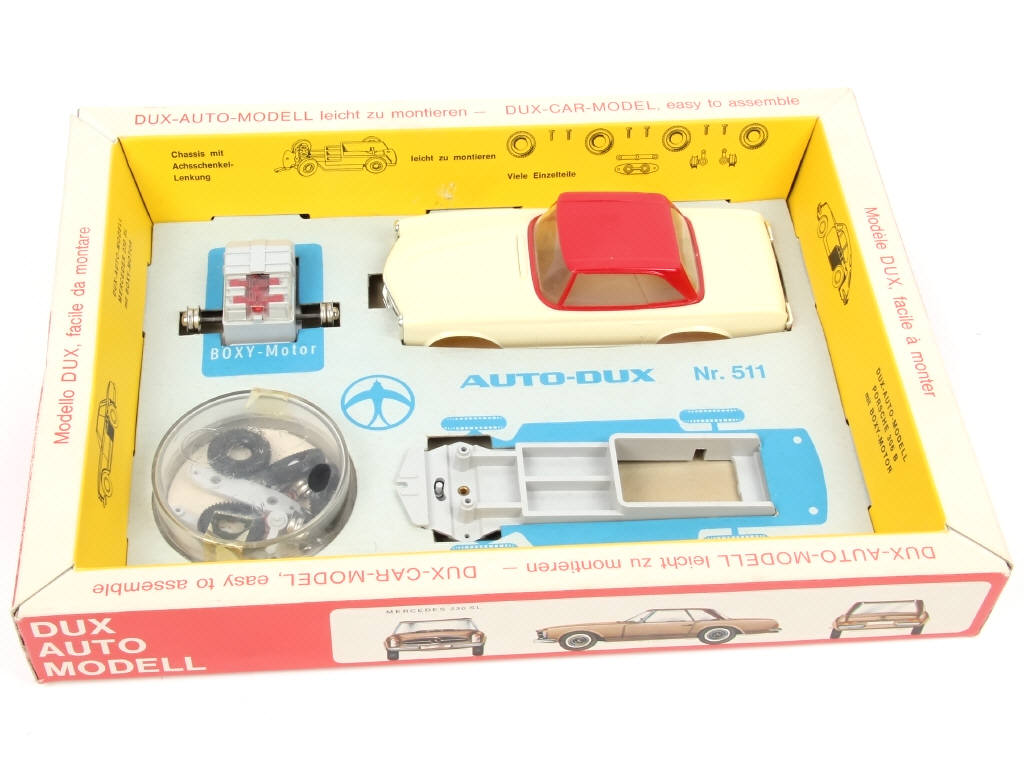 modèle à monter (semble complet) - longueur : 14 cm - avec une carrosserie, châssis, différents accessoires & moteur à friction (fonctionne)
