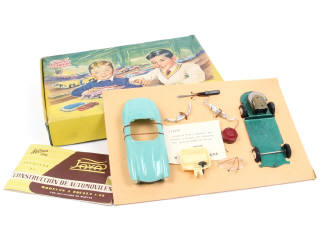 échelle 1/32ème - dimensions du coffret : 30 x 21 cm - avec catalogue & bon de contrôle - contient différents éléments pour le montage du modèle - moteur à friction (à revoir, petits éléments cassés) - ensemble présenté sur socle cartonné avec élastiques de maintien (dont certains coupés) - accrocs avec petites taches sur la boîte - possibilité de petites fixations manquantes