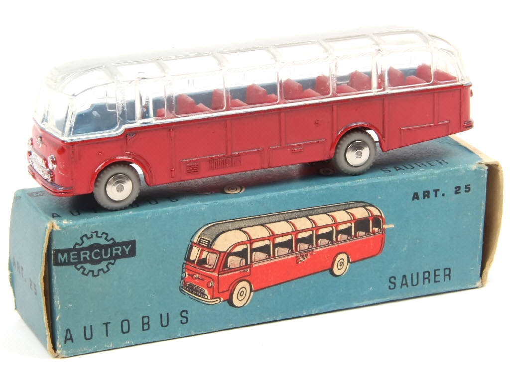 MERCURY (ITALIE) 25 SAURER Autobus rouge, intérieur bleu & toit gris métal