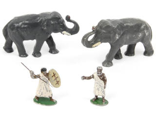 on y joint 2 indigènes (retouchés, une lance manquante)