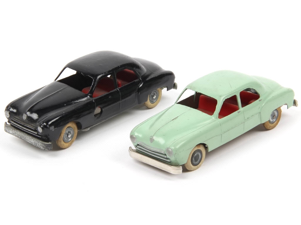 série 'JUNIOR' - un exemplaire motorisé (fonctionne) & l'autre avec éclats plus ou moins importants sur la carrosserie par endroits (certains majeurs, très légères traces de métal fatigue sous la peinture) - pneus séchés, jaunis & plus ou moins endommagés - un plancher terni - manque une vis