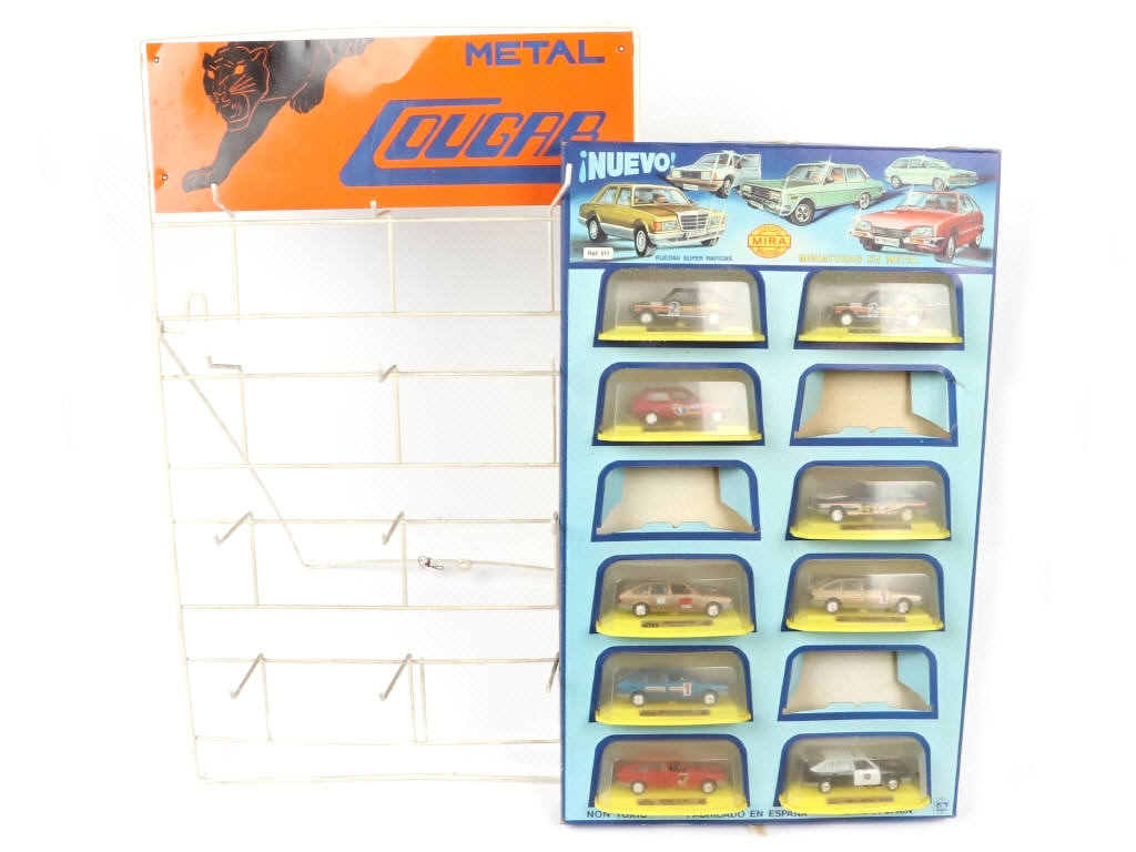 on y retrouve les marques : SOLIDO COUGAR & MIRA (incomplet) - le présentoir MIRA comprend les modèles : CHRYSLER, TALBOT & FORD en états 'A.b' - manques & parties cassées