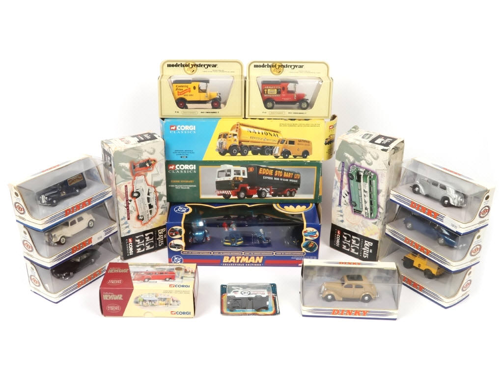 on y retrouve les marques : DINKY MATCHBOX, CORGI & MATCHBOX - comprend notamment les modèles : FORD, BENTLEY, LAND ROVER, CITROËN & MERCEDES - boîtes en états 'b' à 'c' dont un blister déchiré - possibilité de manques & parties cassées