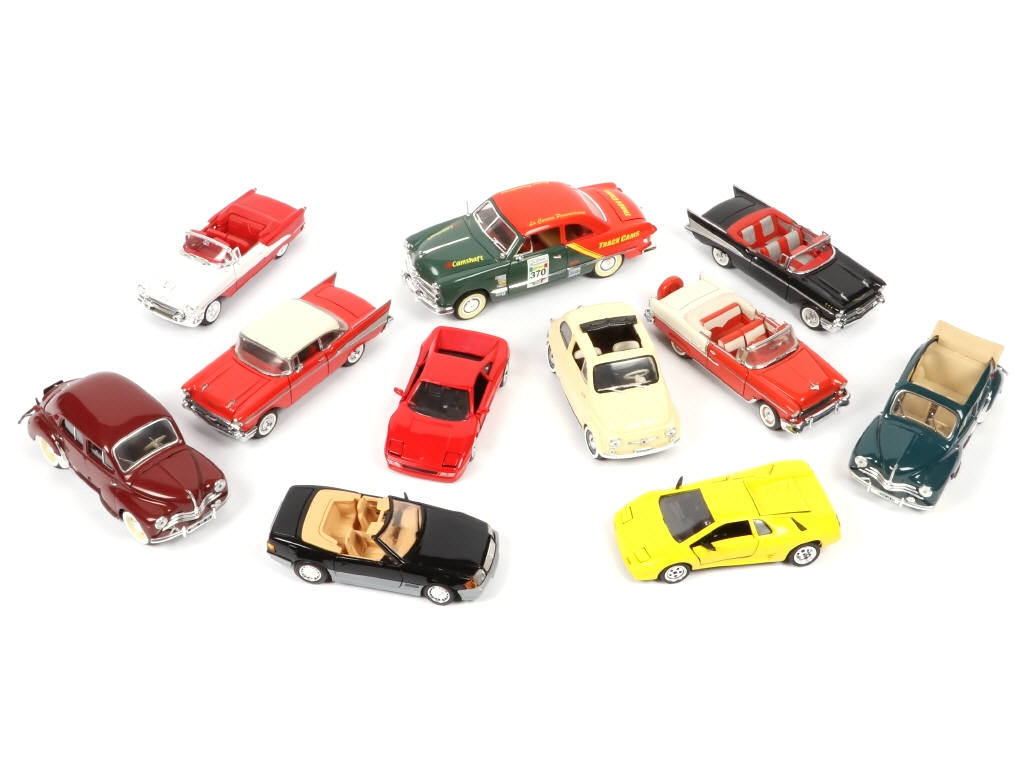 échelle 1/18e & 1/24e - on y retrouve notamment les marques : SOLIDO, WELLY & FRANKLIN MINT - comprend notamment les modèles : CHEVROLET, FORD, OLDSMOBILE, FERRARI, LAMBORGHINI, FIAT, MERCEDES & RENAULT - possibilité de manques & parties cassées