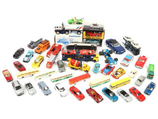 différentes échelles - on y retrouve notamment les marques : MINICHAMPS, SOLIDO, DINKY TOYS, POLITOYS & MAJORETTE - comprend notamment les modèles : BMW, PORSCHE, ALFA ROMEO, FERRARI & MERCEDES - 5 modèles en boîte en état 'b' blister de bus ouvert - manques & parties cassées