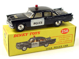 DINKY TOYS (GB) 258 DODGE ROYAL Sedan 'USA POLICE CAR' noir & blanc