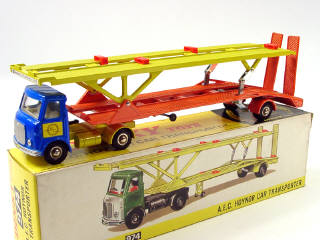 DINKY TOYS (GB) 974 A.E.C. Transporteur de voitures bleu métal, jaune & orange