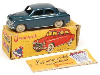 série 'JADALI' - longueur : 12,5 cm - réalisation en métal - boîte plus ou moins déchirée (une petite annotation, avec rare petit livret) - un éclat sur le toit & un autre sur le bas de l'aile avant droite (5x4mm) - L'UNE DES MARQUES LES PLUS RARES & LES PLUS EPHEMERES DES PRODUCTIONS ESPAGNOLES DANS UN TRES BEL ETAT !