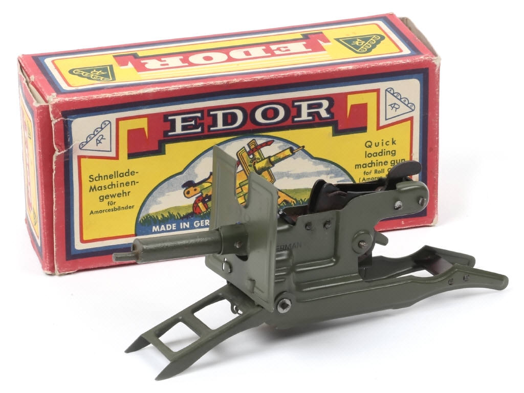 ADRO (ALLEMAGNE) EDOR Mitrailleuse en tôle peinte sur socle kaki