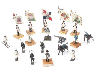 C.B.G. (FRANCE) Ensemble de 15 figurines, 2 ânes & un canon