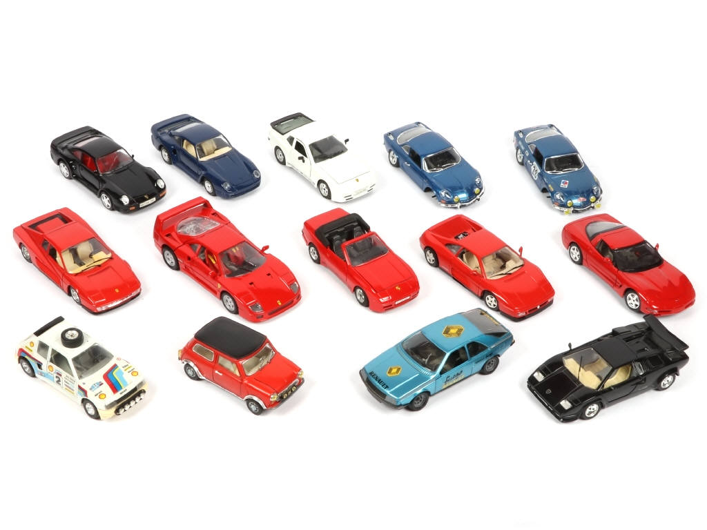 échelles 1/23e, 1/24e & 1/25e - on y retrouve notamment les marques : BBURAGO, POLISTIL, GUISVAL, CORGI & MAJORETTE - comprend les modèles : LAMBORGHINI, RENAULT, MINI, PEUGEOT, FERRARI, CHEVROLET, PORSCHE & ALPINE - manques & parties cassées
