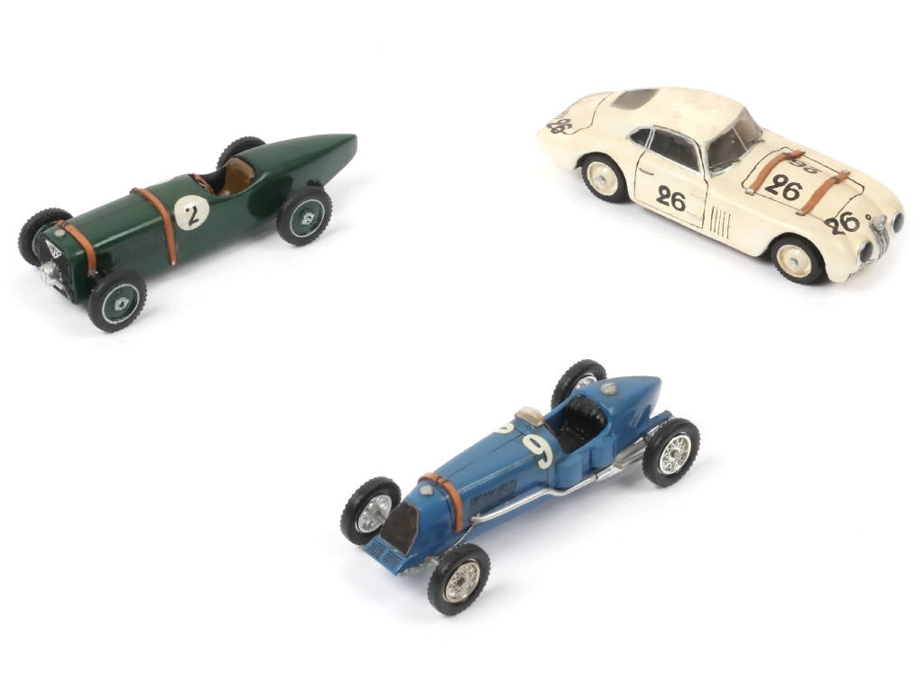 création artisanale en bois - comprend : ALVIS 1926, BMW 328 1939 (carrosserie encrassée) & TALBOT DARRAQ 1926