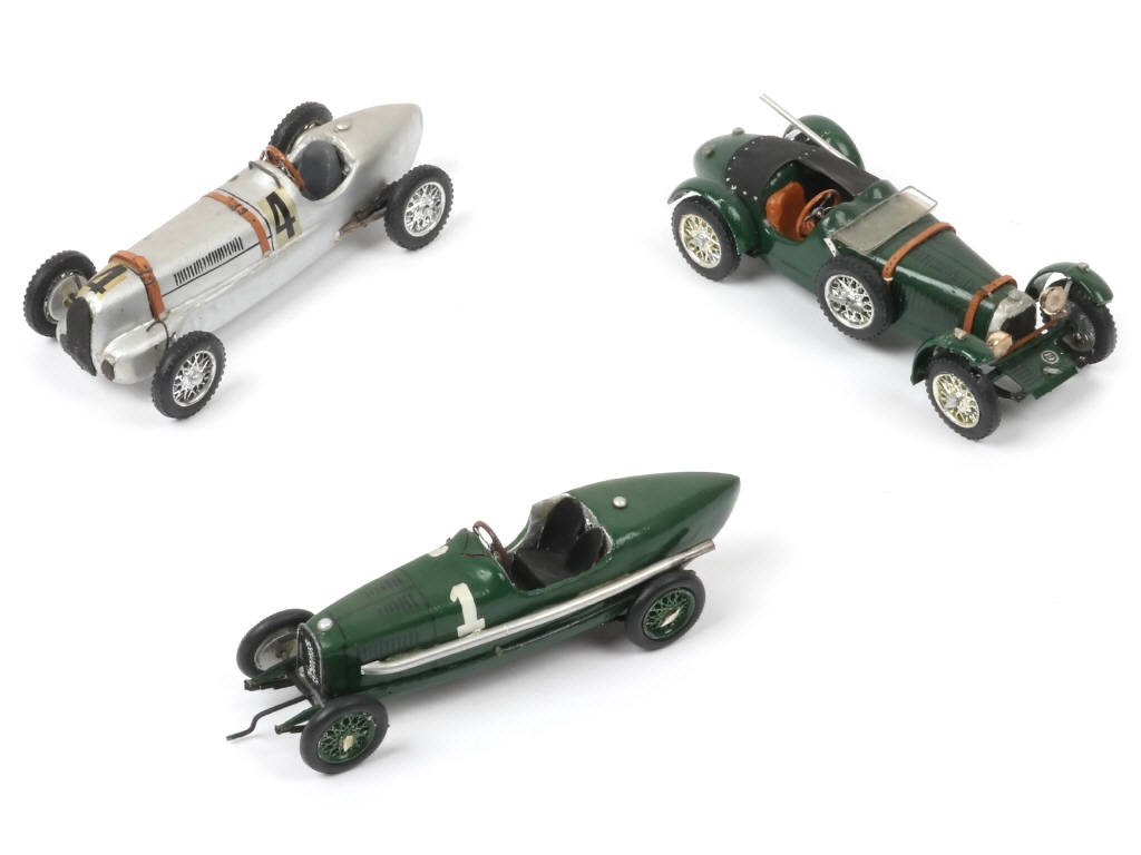 création artisanale en bois - comprend : SUNBEAM 1934 (état 'A-', craquelures sur le haut de la carrosserie), ASTON MARTIN Le Mans 1931 & B.H.W 1939