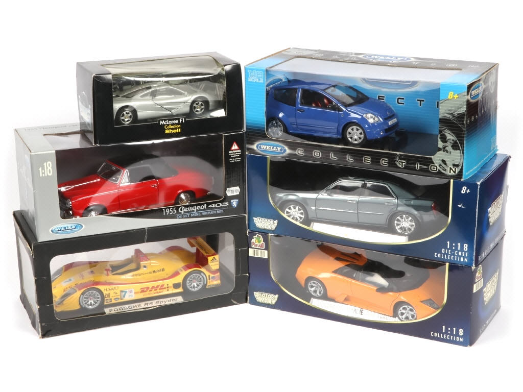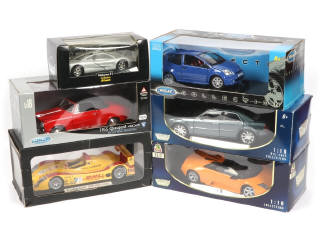 grande échelle - on y retrouve les marques : MAISTO, WELLY, NOREV & MOTOR MAX - comprend les modèles : MCLAREN, PEUGEOT, PORSCHE, CITROËN, CHRYSLER & LAMBORGHINI - boîtes en états 'b' à 'c' - possibilité de manques & parties cassées