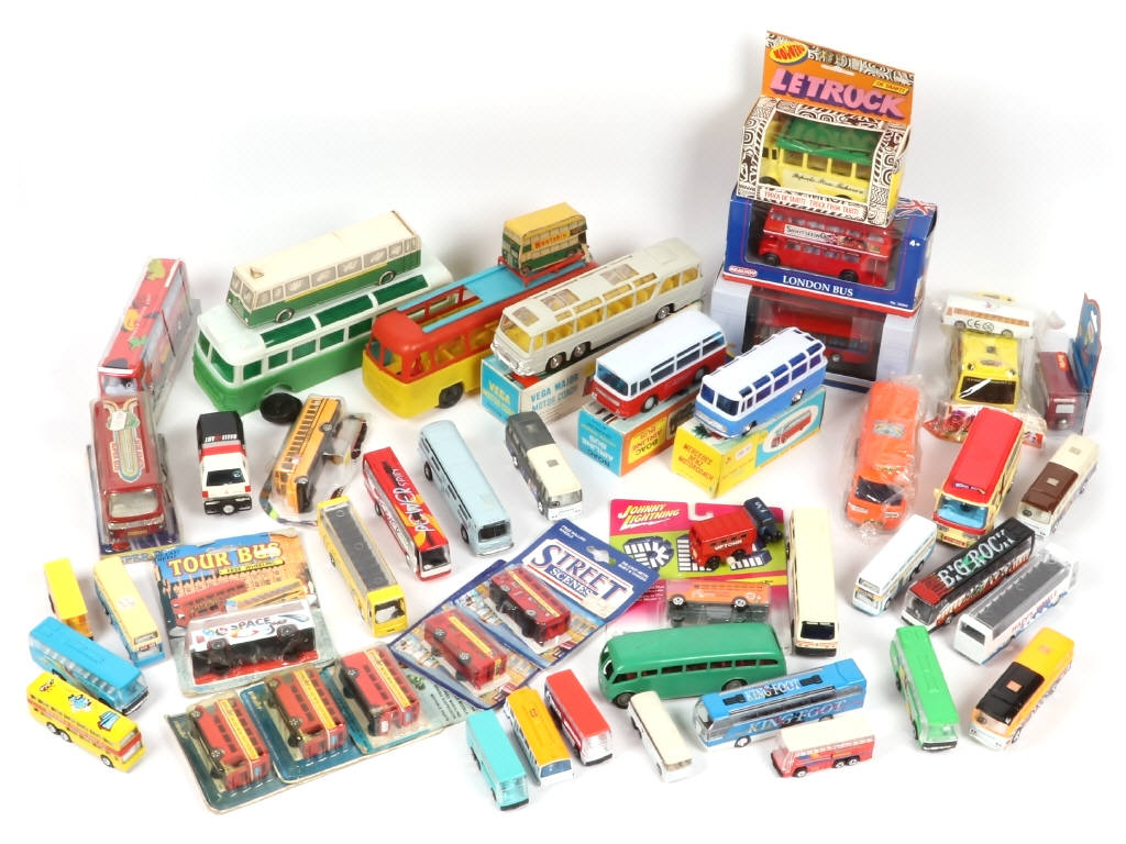 différentes échelles - quelques modèles à friction - on y retrouve notamment les marques : REALTOY, METROBUS, CITYBUS, PLAYART & CHARMERZ - 20 modèles en boîtes en états 'b' à 'd' - manques & parties cassées