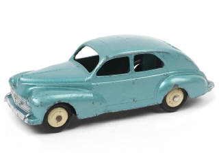 DINKY TOYS (FRANCE) 24R PEUGEOT 203 Petite lunette arrière (version avec intérieur de toit quadrillé & ailes lisses) bleu métal, jantes crème