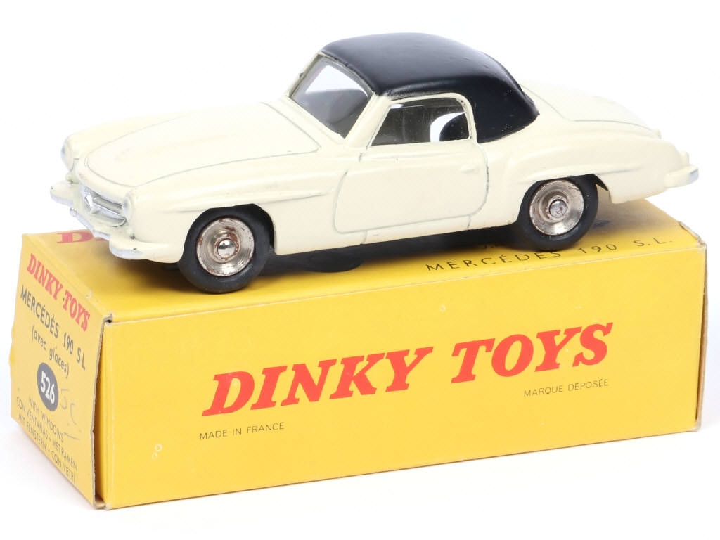 DINKY TOYS (FRANCE) 526 MERCEDES 190 SL (version avec vitres & jantes concaves) ivoire, toit noir