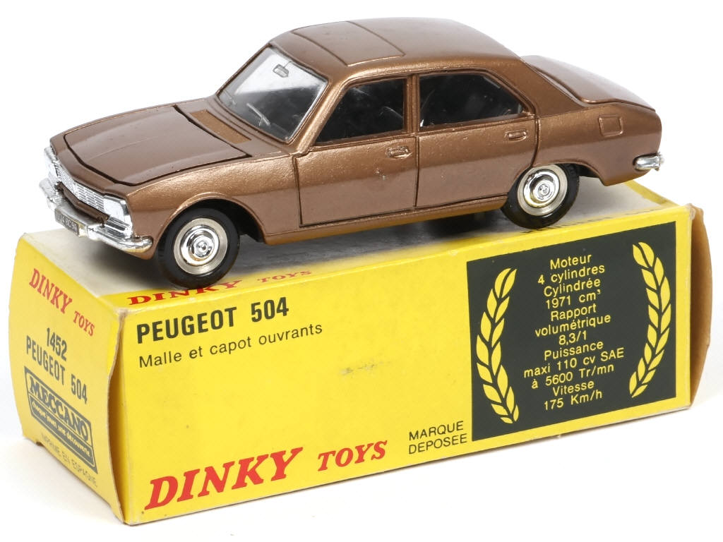 DINKY TOYS (FRANCE) 1452 PEUGEOT 504 (made in SPAIN) bronze métal