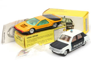 comprend les références : 1426 (avec dépliant 'L'EDUCATION ROUTIERE' & panneau sous sachet, une fêlure sur le pare-brise, pneus salis) & 1450 (une plaque minéralogique à recoller)