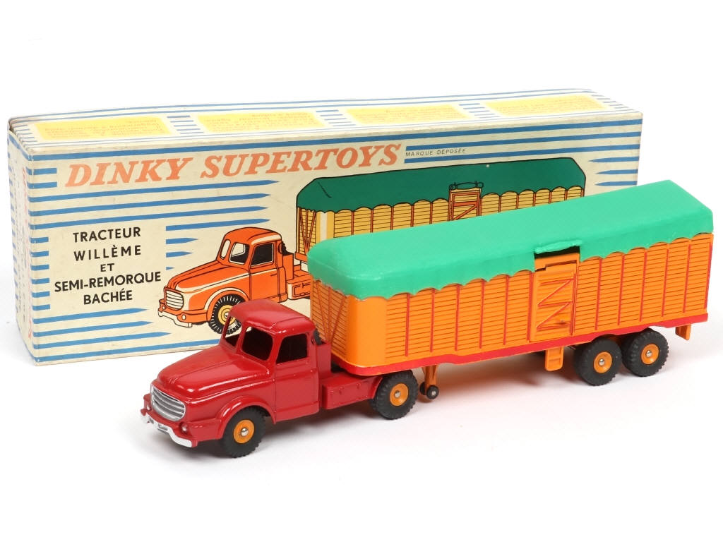 DINKY TOYS (FRANCE) 896 WILLEME Semi-remorque bâché (version avec jantes concaves) rouge & orange, bâche verte