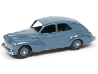 DINKY TOYS (FRANCE) 24R PEUGEOT 203 Petite lunette arrière (version avec intérieur de toit quadrillé & ailes lisses) bleu pétrole, jantes identiques