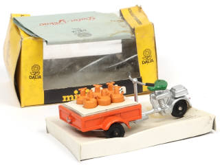 avec 6 bouteilles de gaz, petit dépliant de la marque & cale de présentation - traces d'oxydation sur les axes de roues - boîte déformée, tachée & encrassée