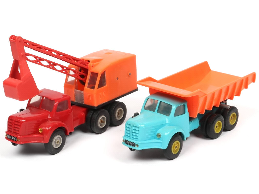 comprend les versions : pelle (état 'A-') & benne carrière - carrosseries légèrement déformées & encrassées - axes de roues plus ou moins oxydés