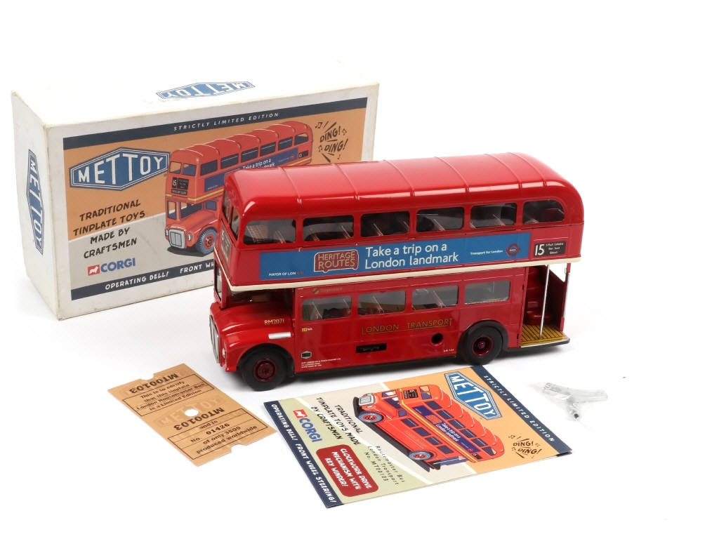 réplique du jouet ancien METTOY - longueur : 23 cm - avec moteur à clé & bruiteur (fonctionnent - avec clé), fascicule & certificat d'édition limitée numérotée 1426/3500